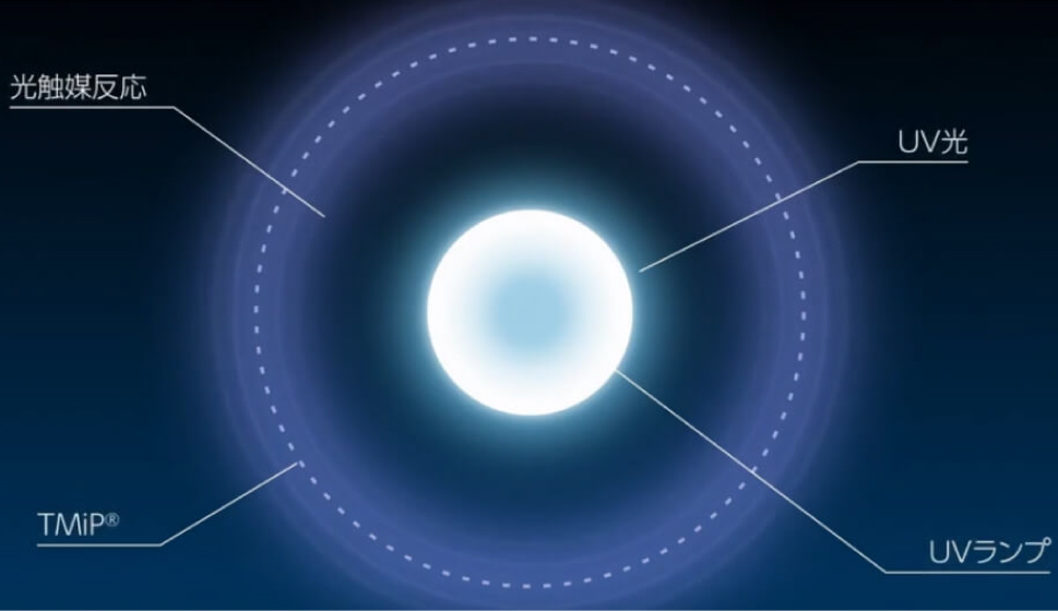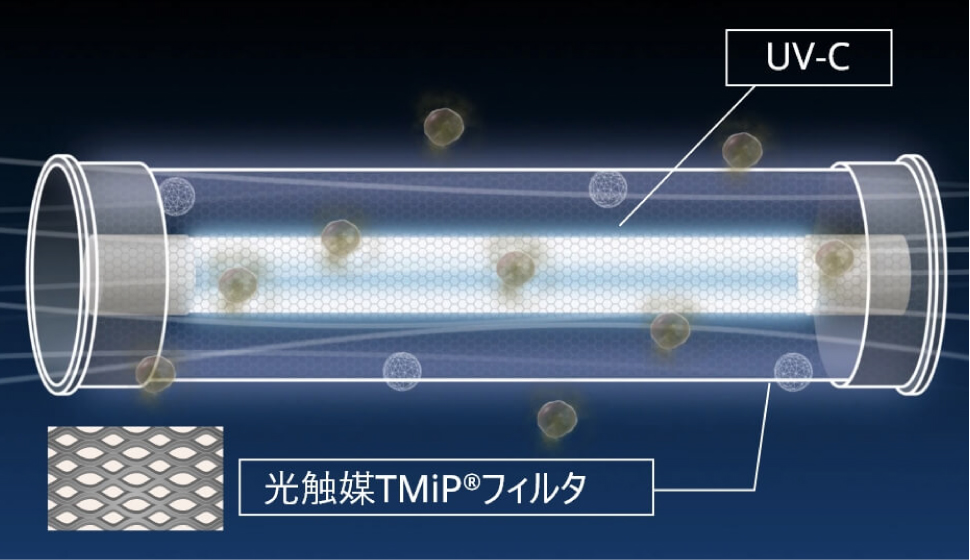 光触媒TMiPⓇは、網目状に微細な孔を形成したチタン薄板にアナターゼ型酸化チタンの光触媒を担持させたもので、穴のないチタン薄板の光触媒を施したものに比べて有機物の酸化分解効果が格段に高まるのが特長です。