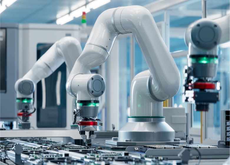 全数導通・耐圧検査、クリーンルーム対応、加工履歴の長期管理など、産業機械に求められる高い信頼性を確保。