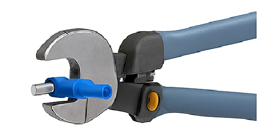 - 専用工具で端子と電線を圧縮し、金属同士を塑性変形させて接合