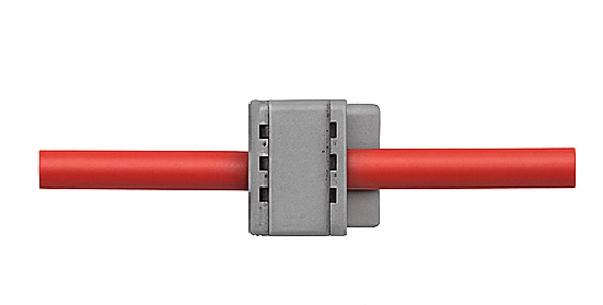 - 絶縁被覆を剥がさず、端子の刃で電線に食い込ませて接続