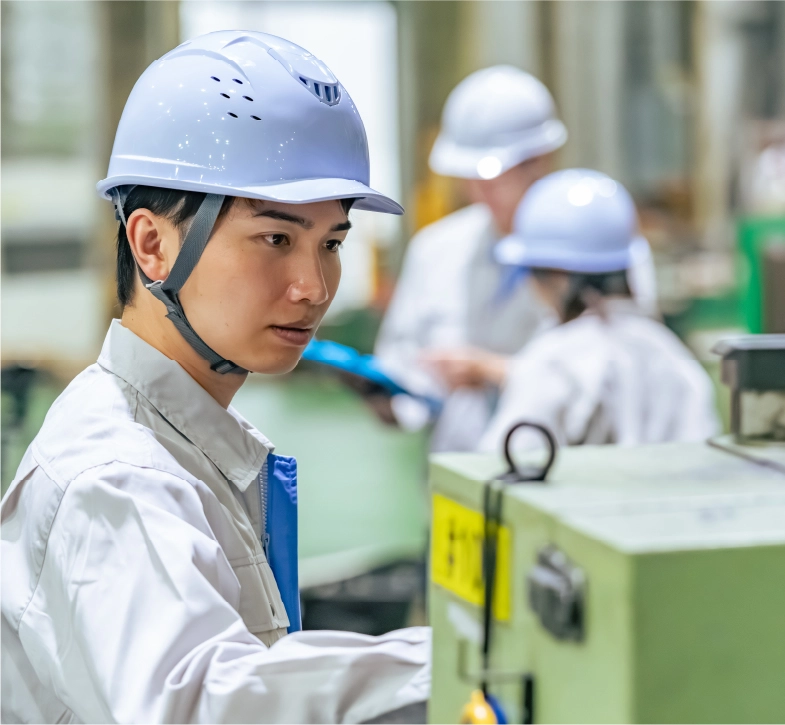 緊急時に設備を即停止できる仕組みを設け、作業者と設備を保護する。