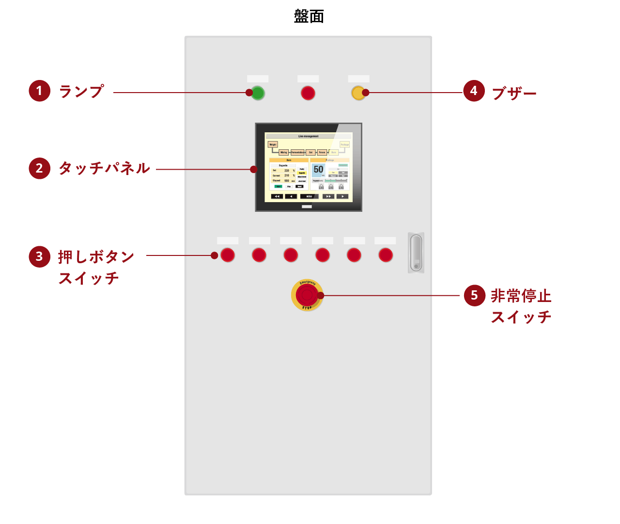 ランプ・タッチパネル表示機などにより運用状態や異常状態を
